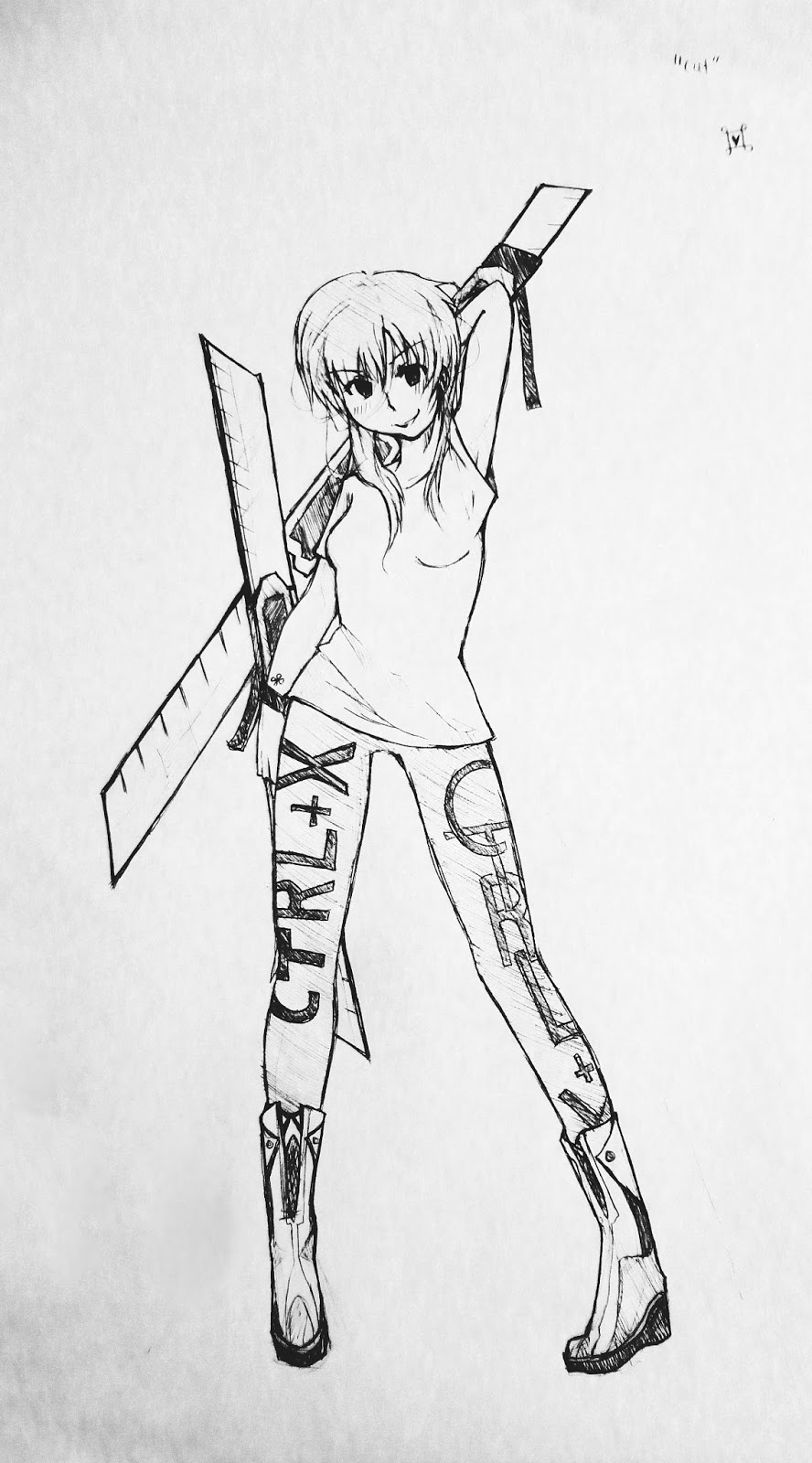 Meet my new character. "Cut". I started drawing while watching Face-Off and this happened. LOL. She's pretty awesome though I love her. She has two giant box cutters that she uses to...well...cut things. ahaha. Pretty self explanatory!!!